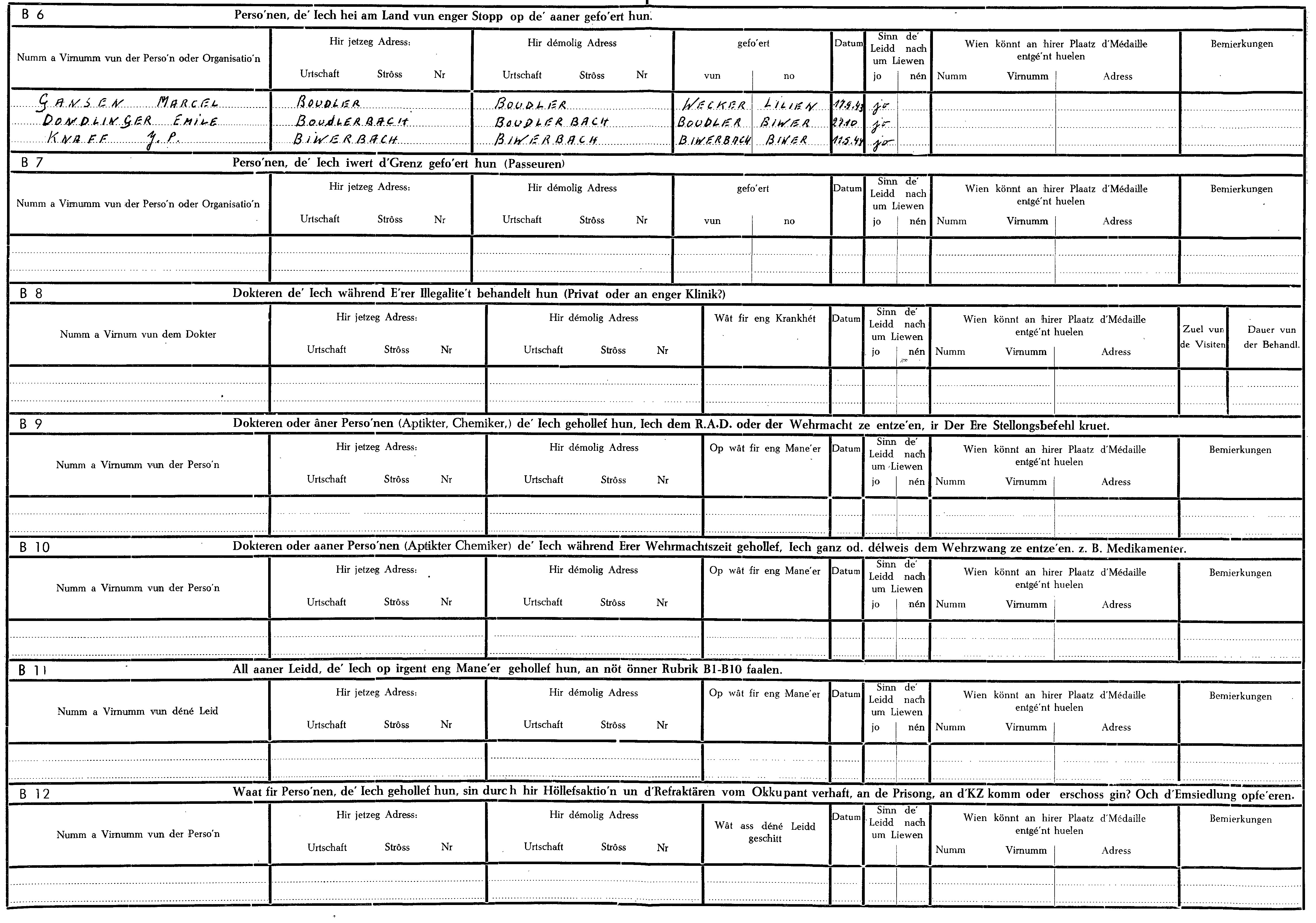 Nom, prénom, nom pendant l'occupation
