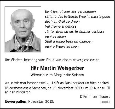 Divers Ell 10.10.2010.JPG Télécharger le document Weisgerber_Martin_30081921_Ell.pdf Télécharger le document LW LW 2011.jpeg Télécharger le document LW 2012.jpg Télécharger le document Weisgerber Martin Oberpallen LW.jpeg Télécharger le document MRN 1.jpg Télécharger le document 2.jpg Télécharger le document 3.jpg Télécharger le document Weisgerber Martin Weisgerber Martin1.pdf Télécharger le document Weisgerber_Martin_Oberpallen_Ell.jpg Télécharger le document