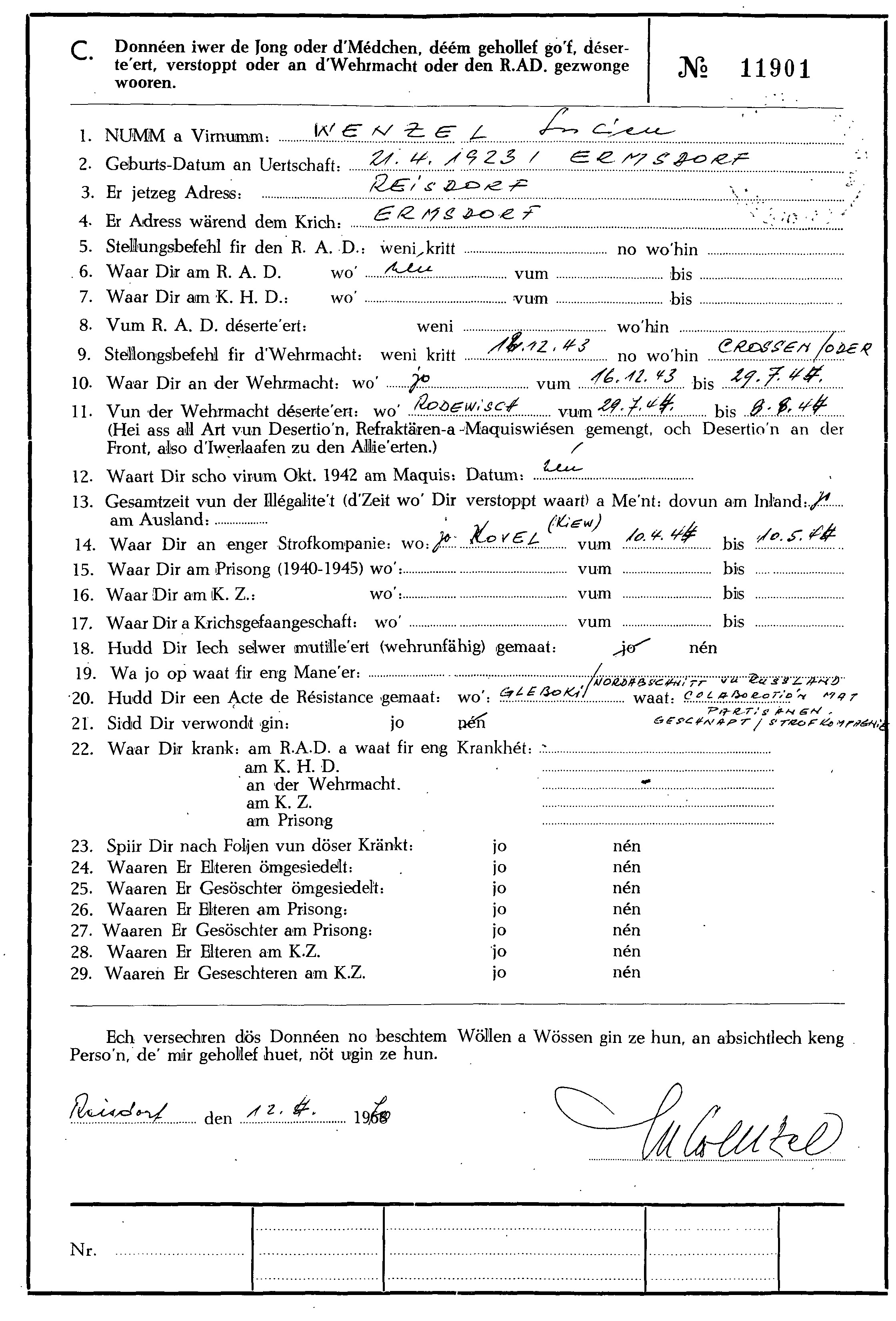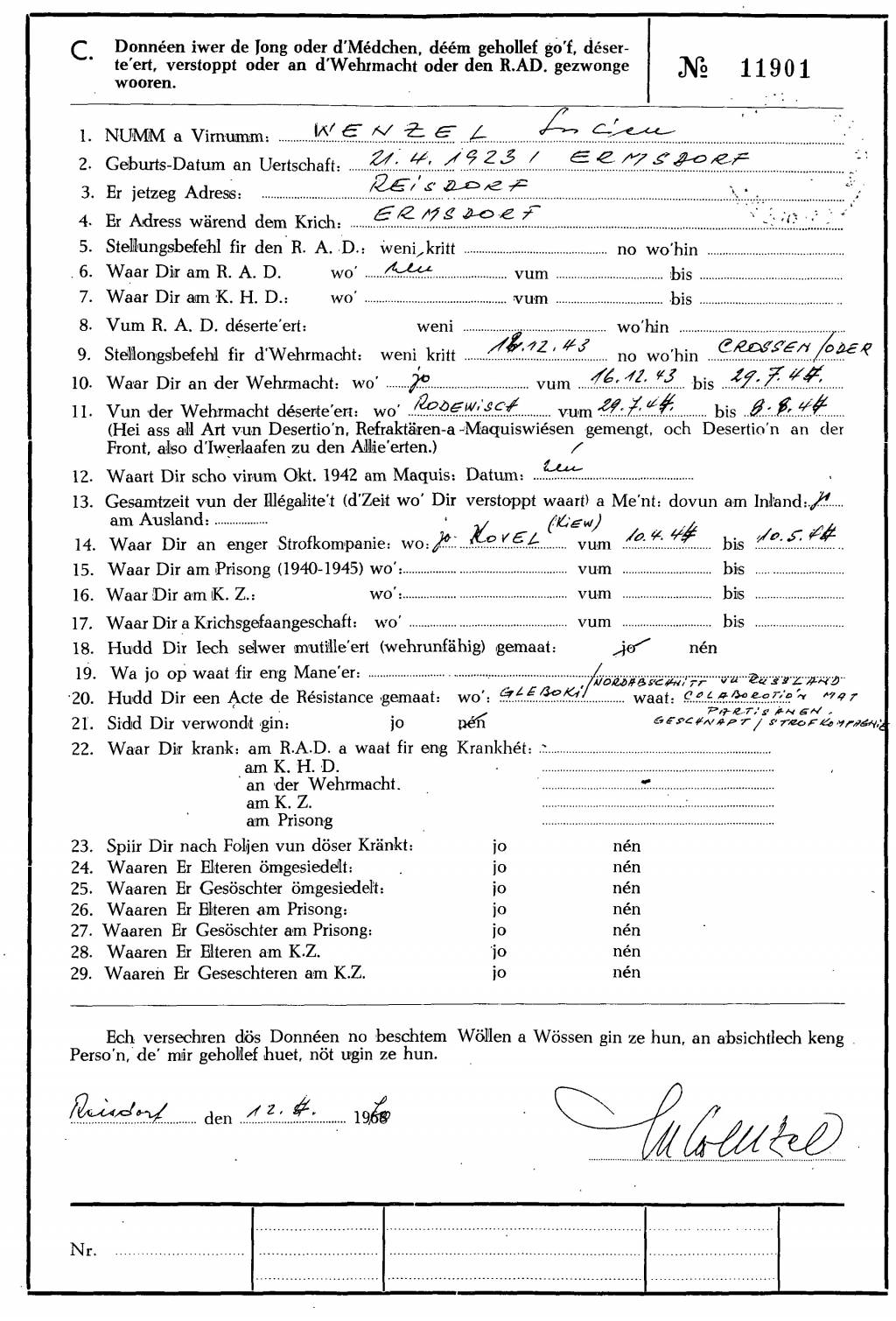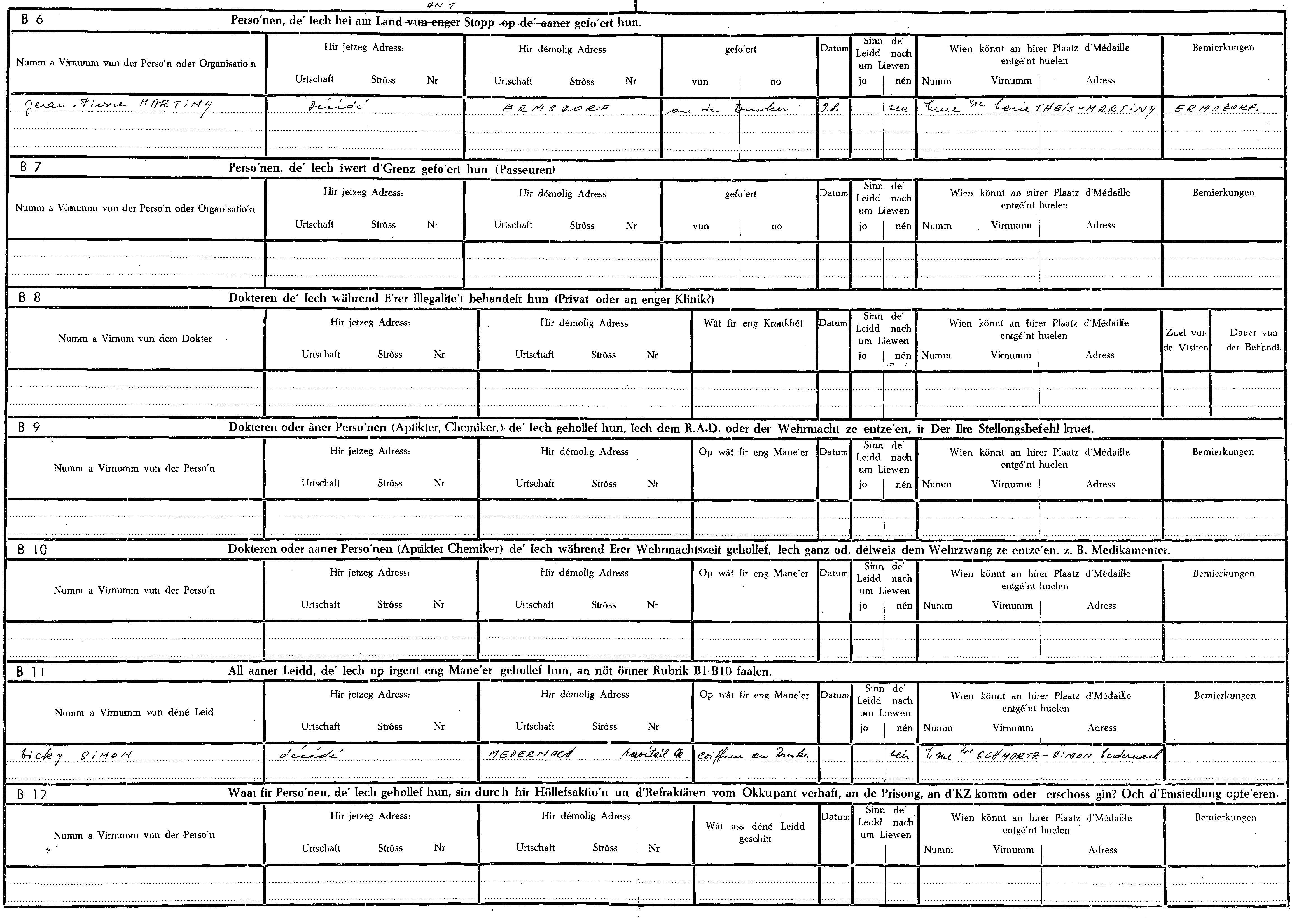 Nom, prénom, nom pendant l'occupation
