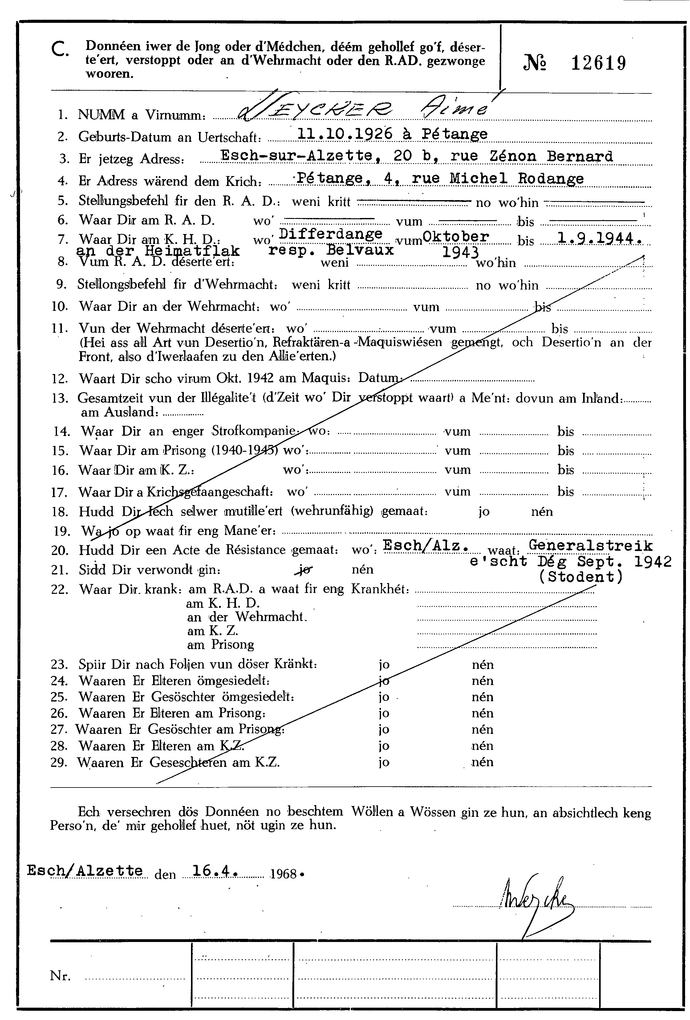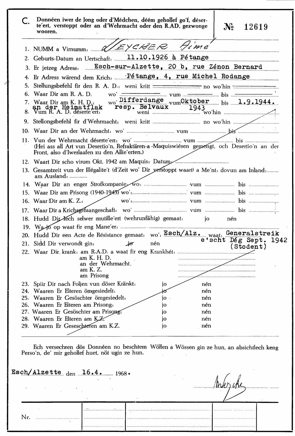 Nom, prénom, nom pendant l'occupation