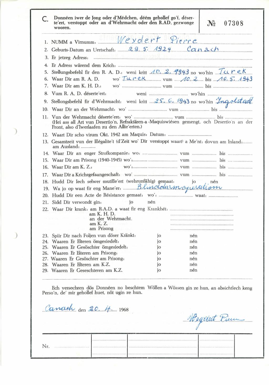 Nom, prénom, nom pendant l'occupation