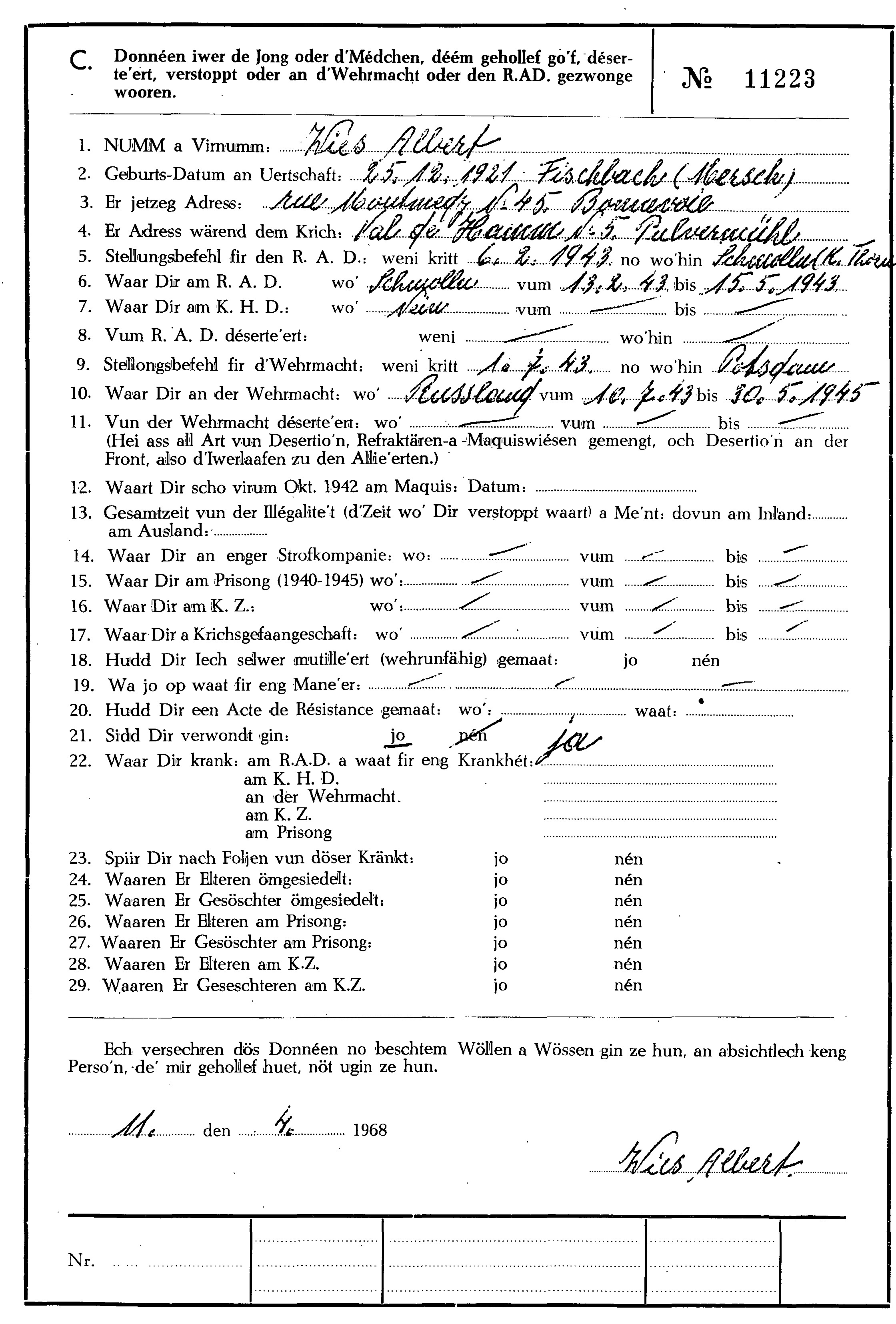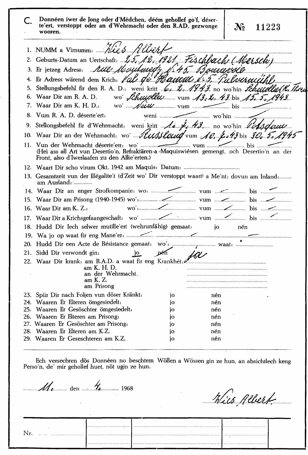 Nom, prénom, nom pendant l'occupation