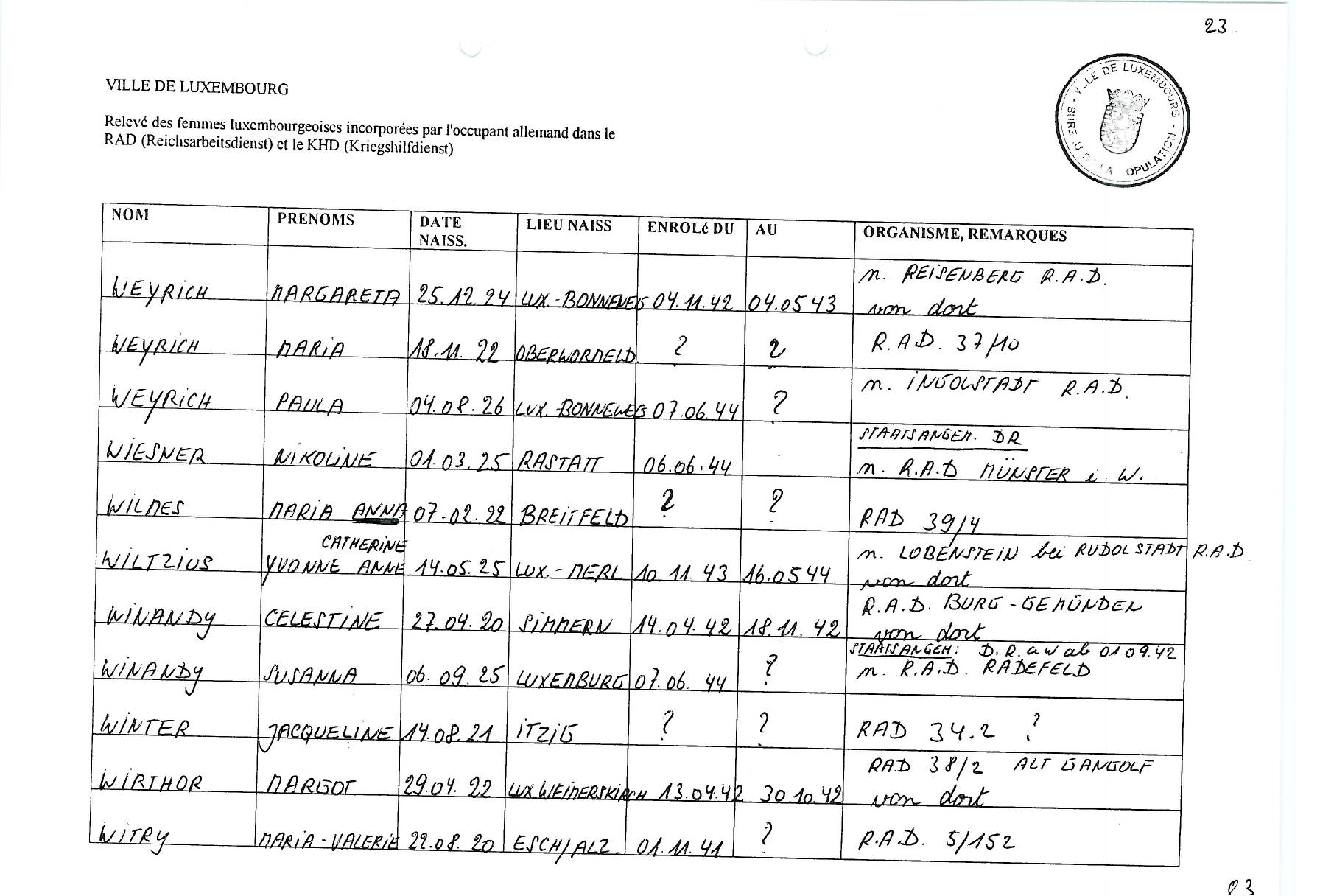 Nom, prénom, nom pendant l'occupation