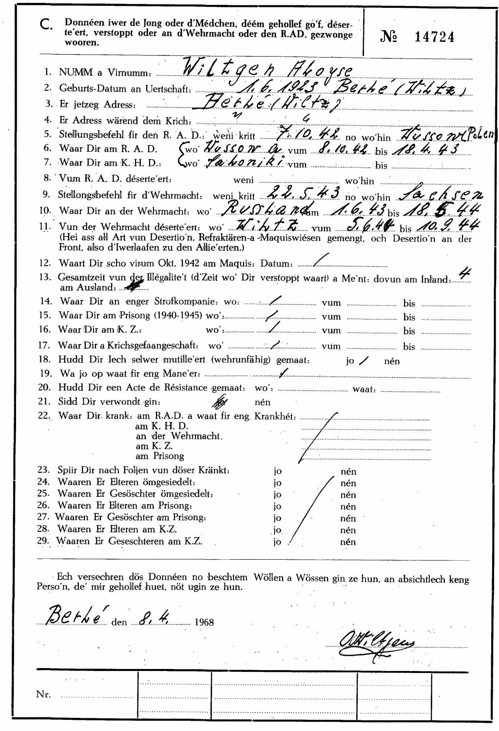 Divers Wiltgen Aloyse 01061923 Perlé 26051978.pdf Télécharger le document MRN 1.jpg Télécharger le document 2.jpg Télécharger le document 3.jpg Télécharger le document