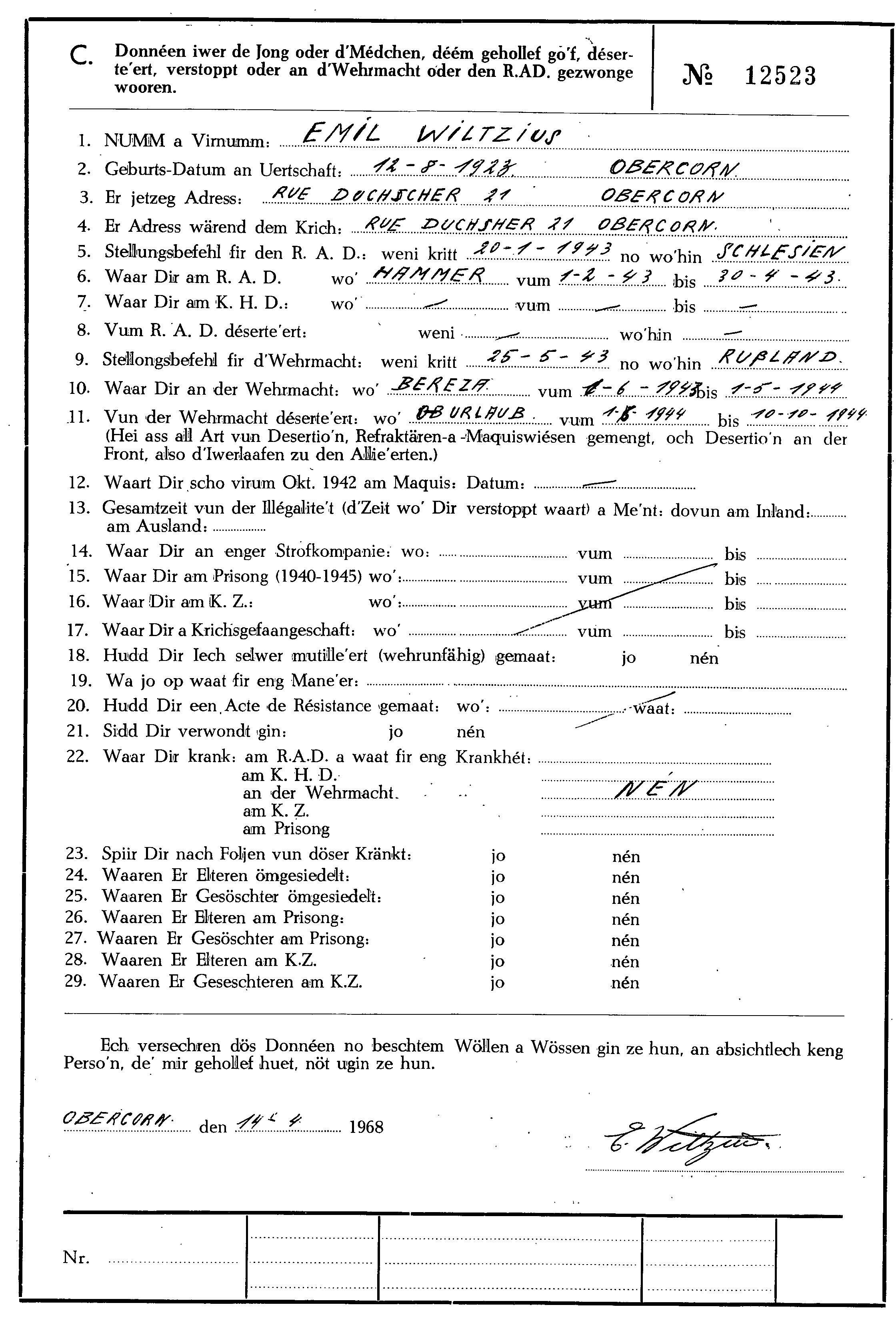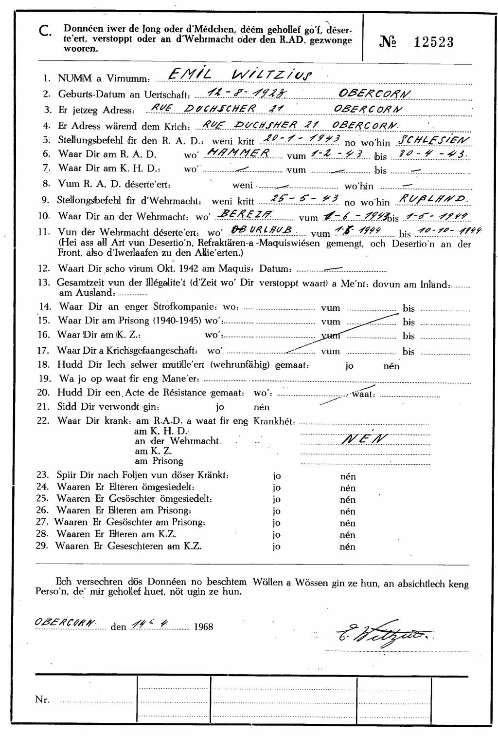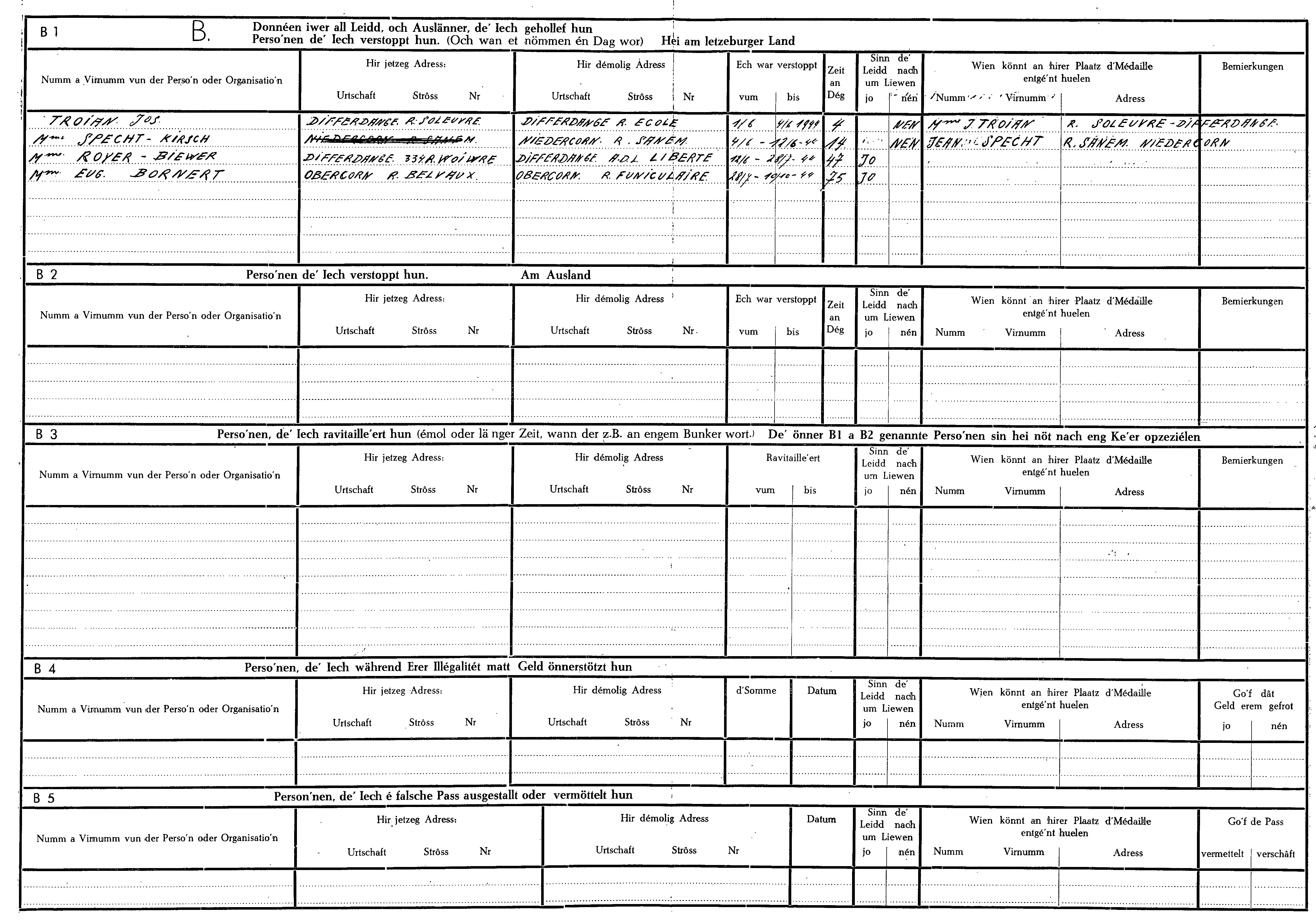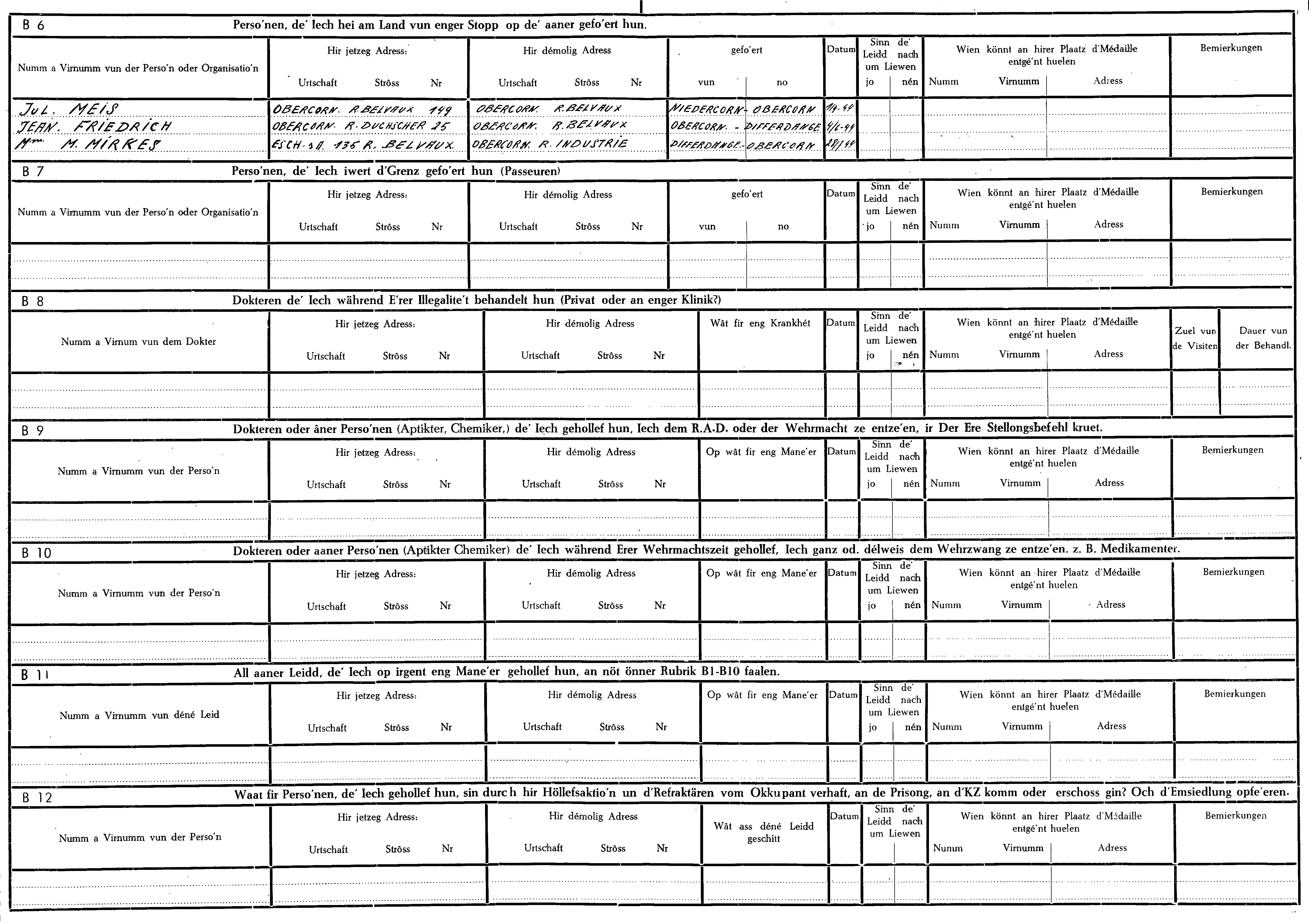 Nom, prénom, nom pendant l'occupation