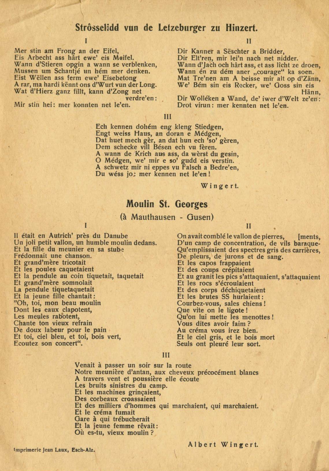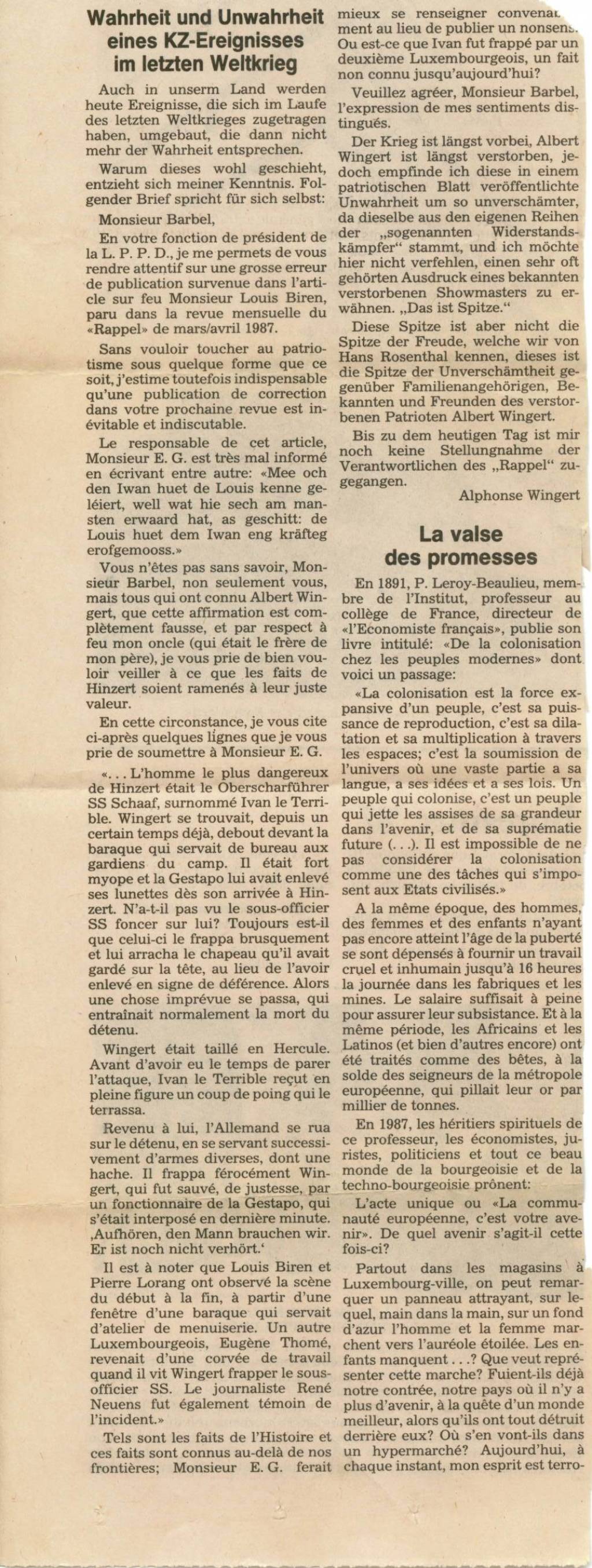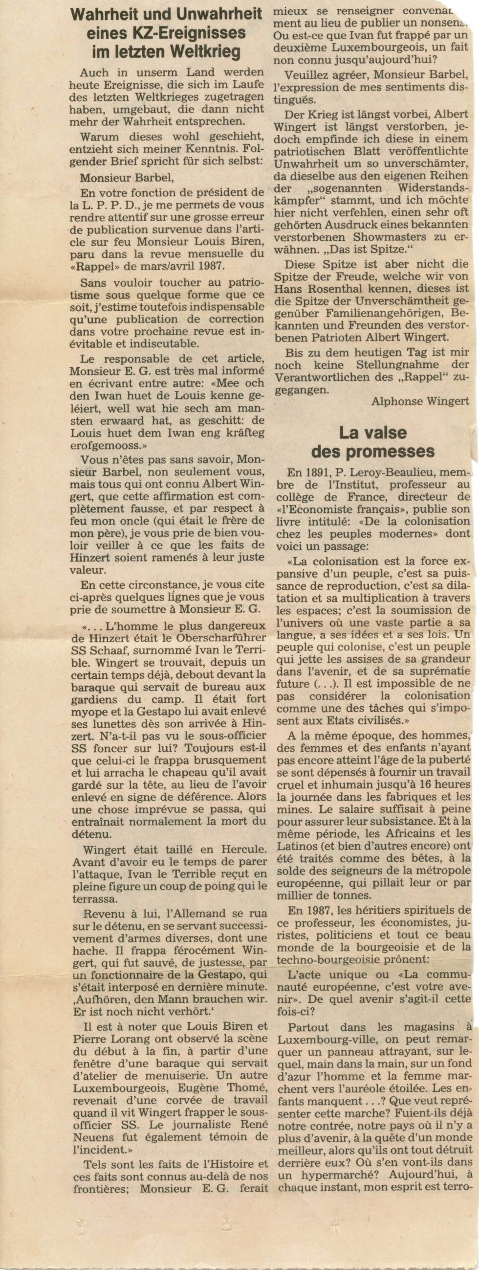 Wingert Albert .... Schifflange Holtz KREMER Nicolas Aus dunkler Zeit 1993