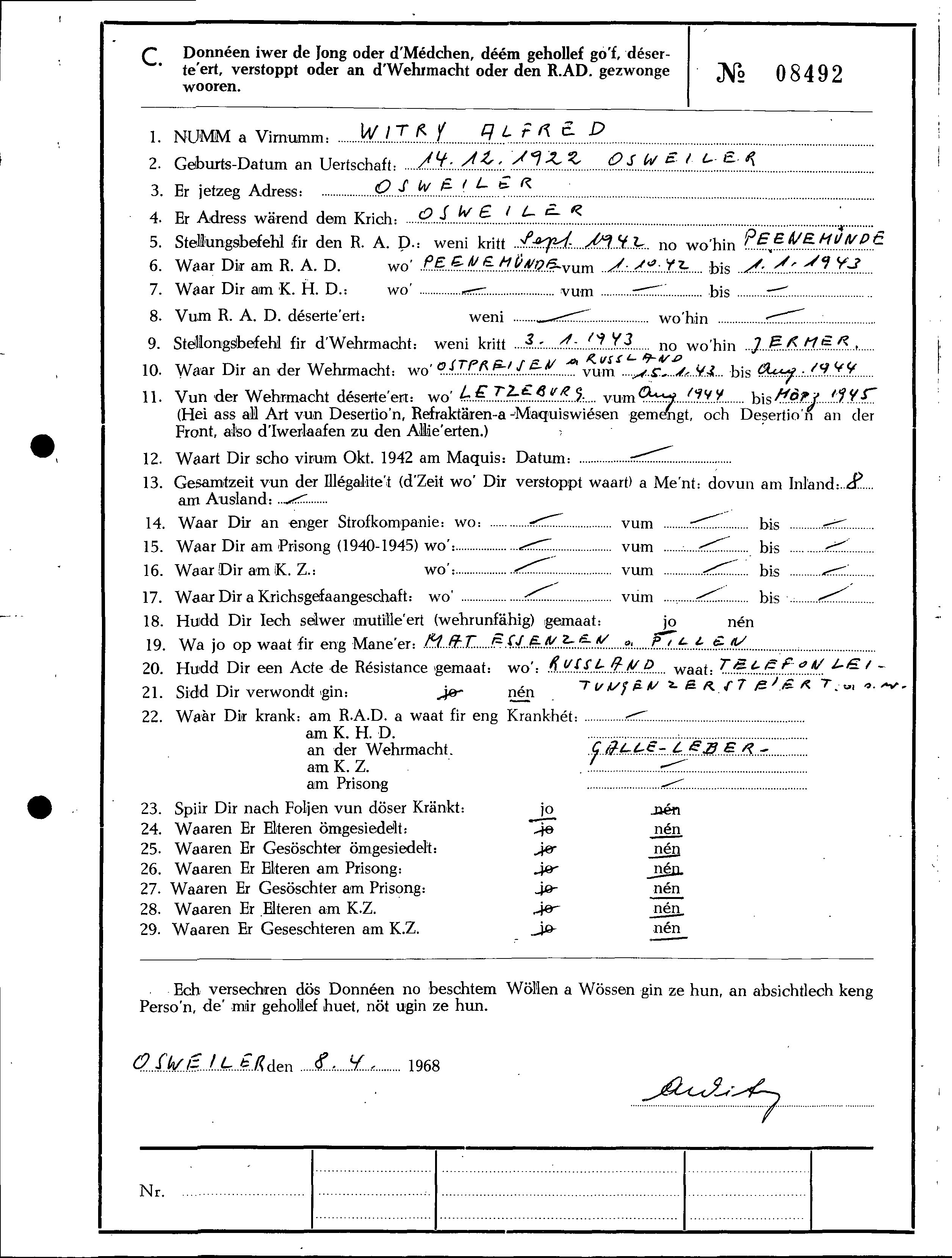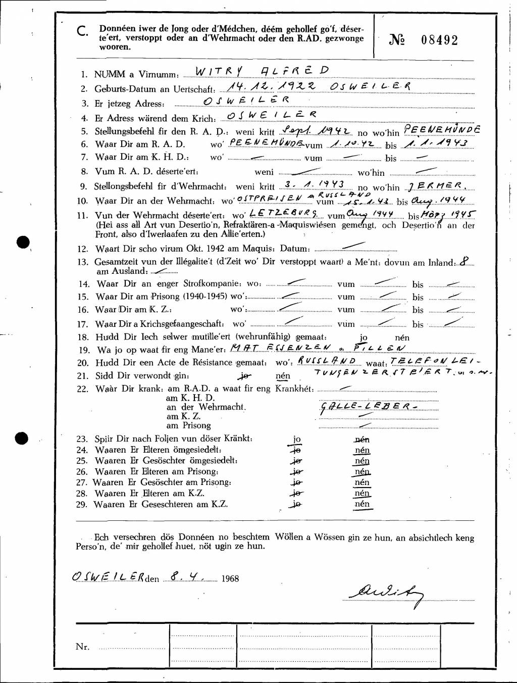 Divers Witry Alfred 15121922 Osweiler .jpg Télécharger le document WITRY Alfred 14121922 Osweiler 1.jpg Télécharger le document 2.jpg Télécharger le document 3.jpg Télécharger le document