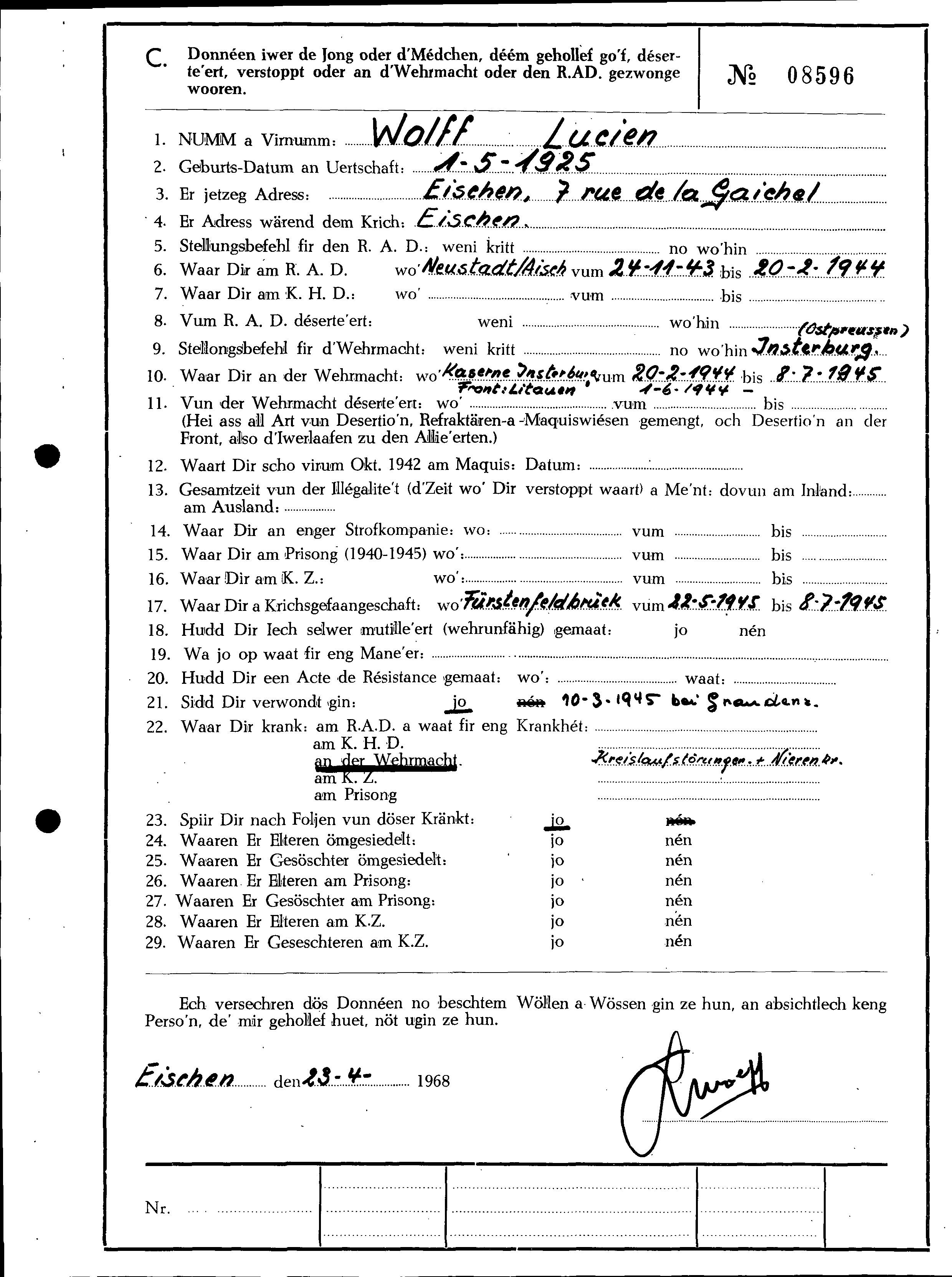 WOLFF Lucien 01051925 Eischen 1.jpg Télécharger le document 2.jpg Télécharger le document 3.jpg Télécharger le document Wolff_Lucien_01051925_Eischen_2.jpg Télécharger le document Wolff_Lucien_01051925_Eischen.jpg Télécharger le document