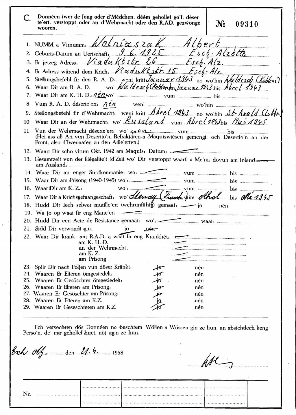 WOLNIASZAK Albert 09061925 Esch sur Alzette 1.jpg Télécharger le document 2.jpg Télécharger le document 3.jpg Télécharger le document