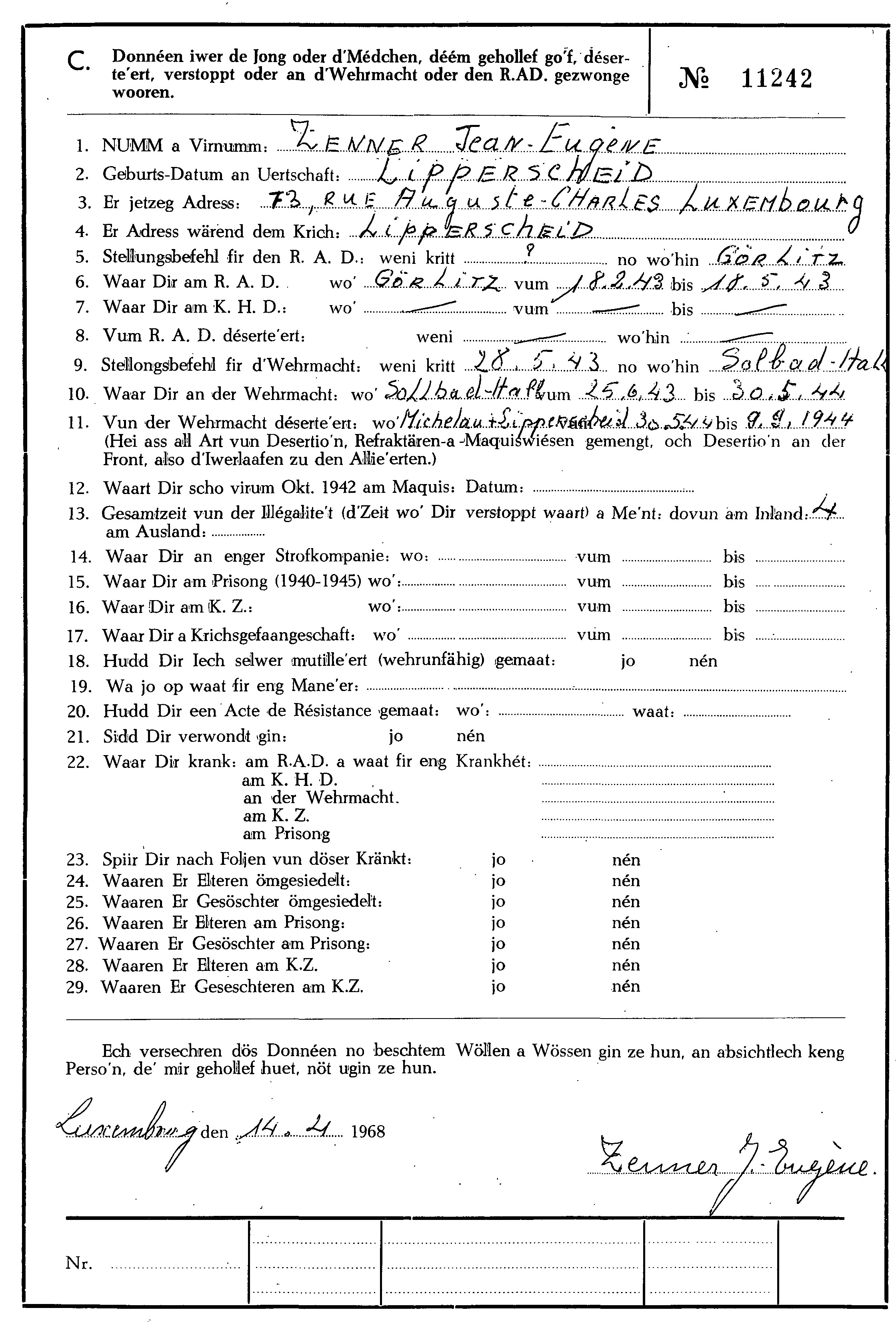 Nom, prénom, nom pendant l'occupation
