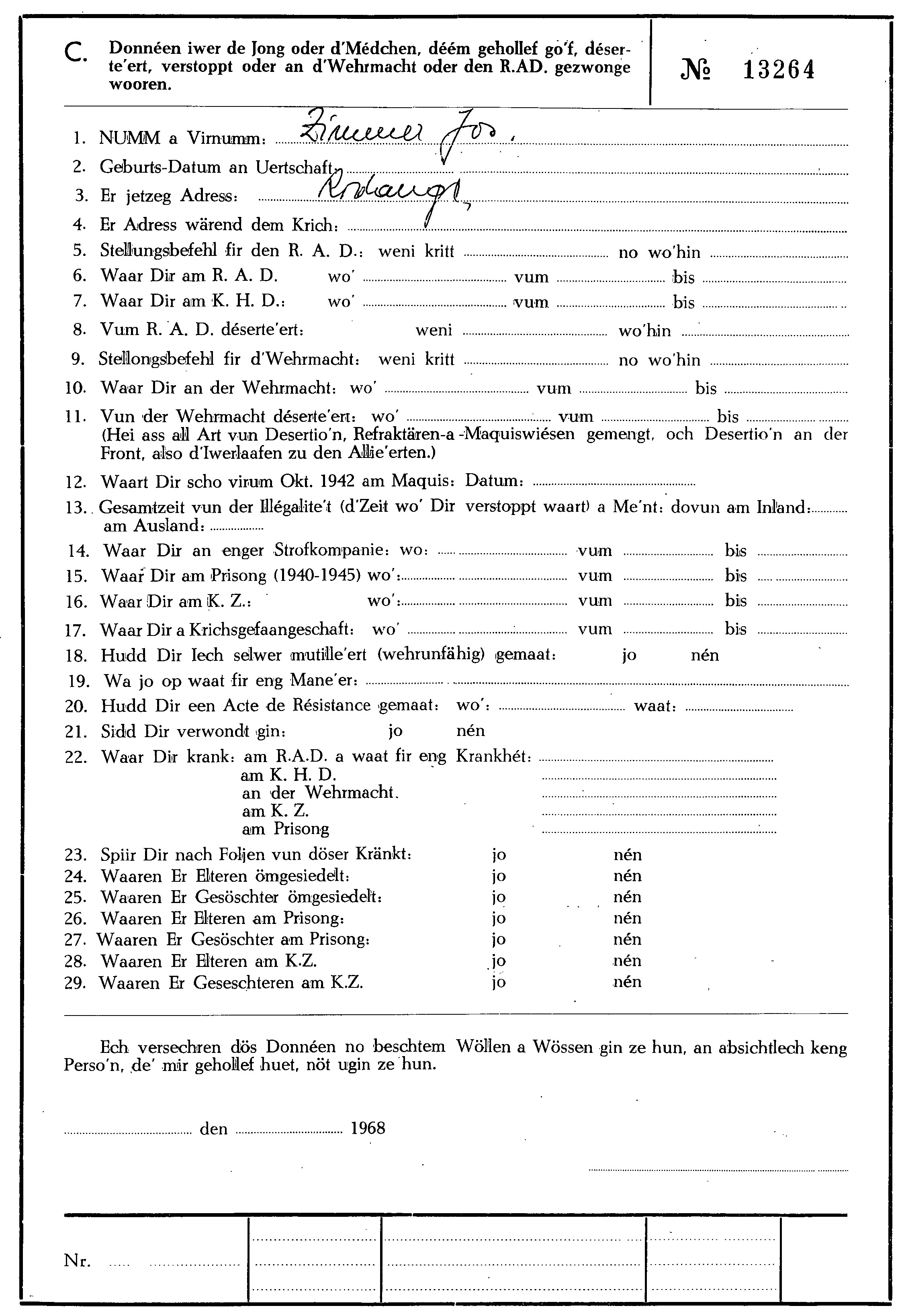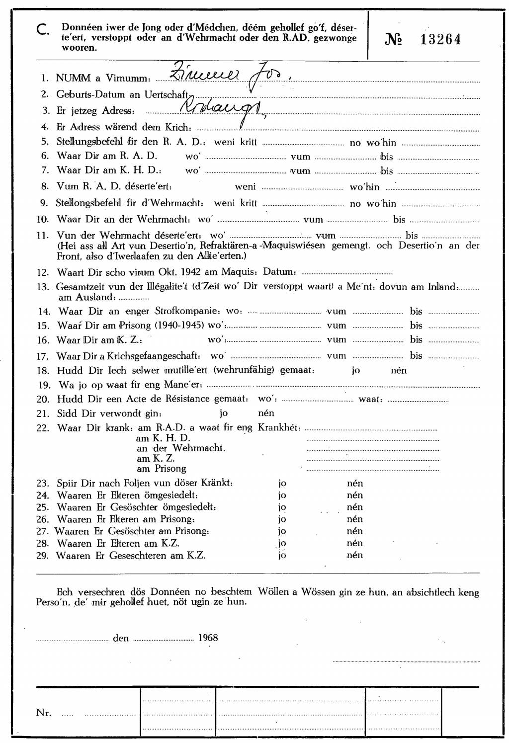 Nom, prénom, nom pendant l'occupation