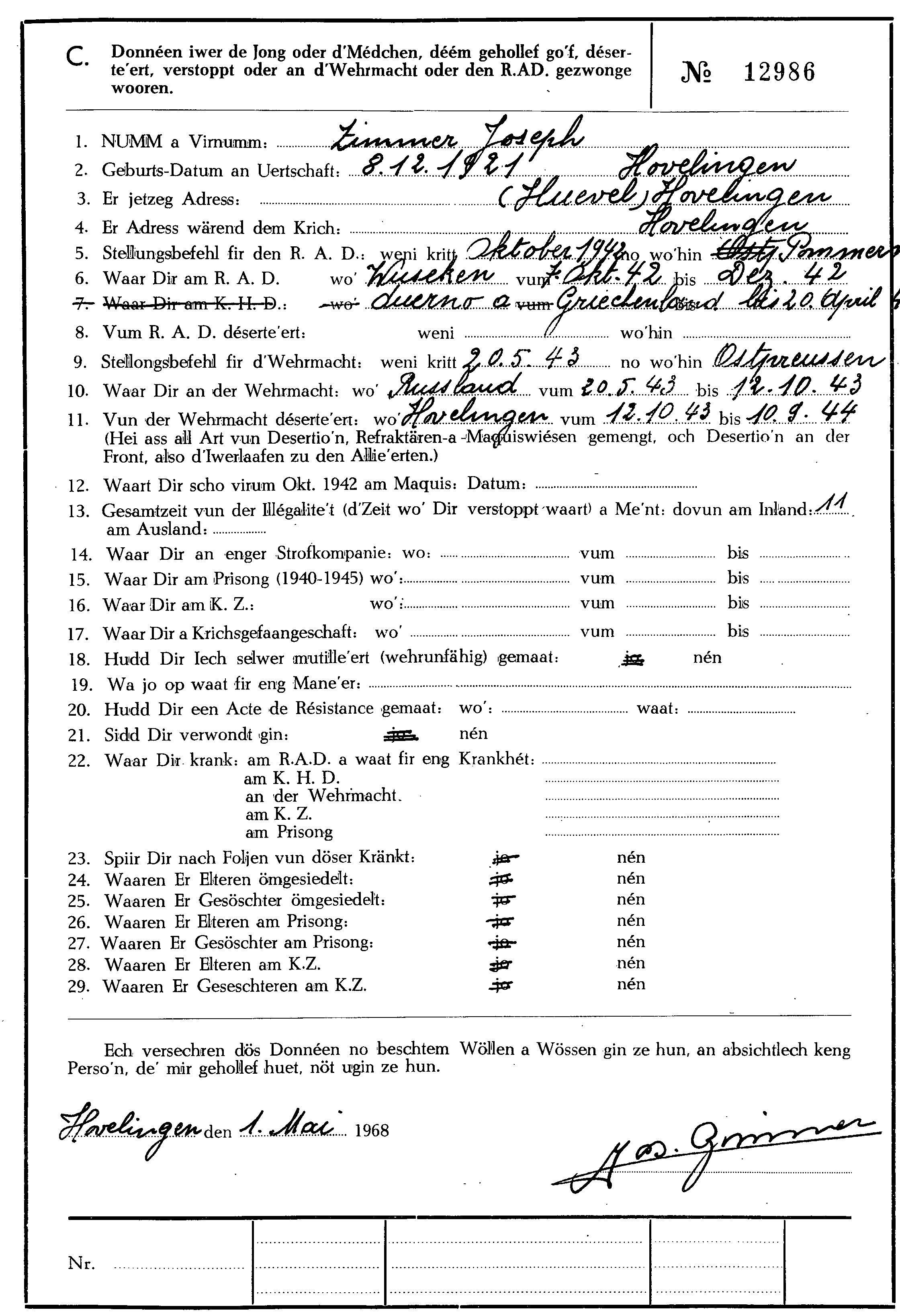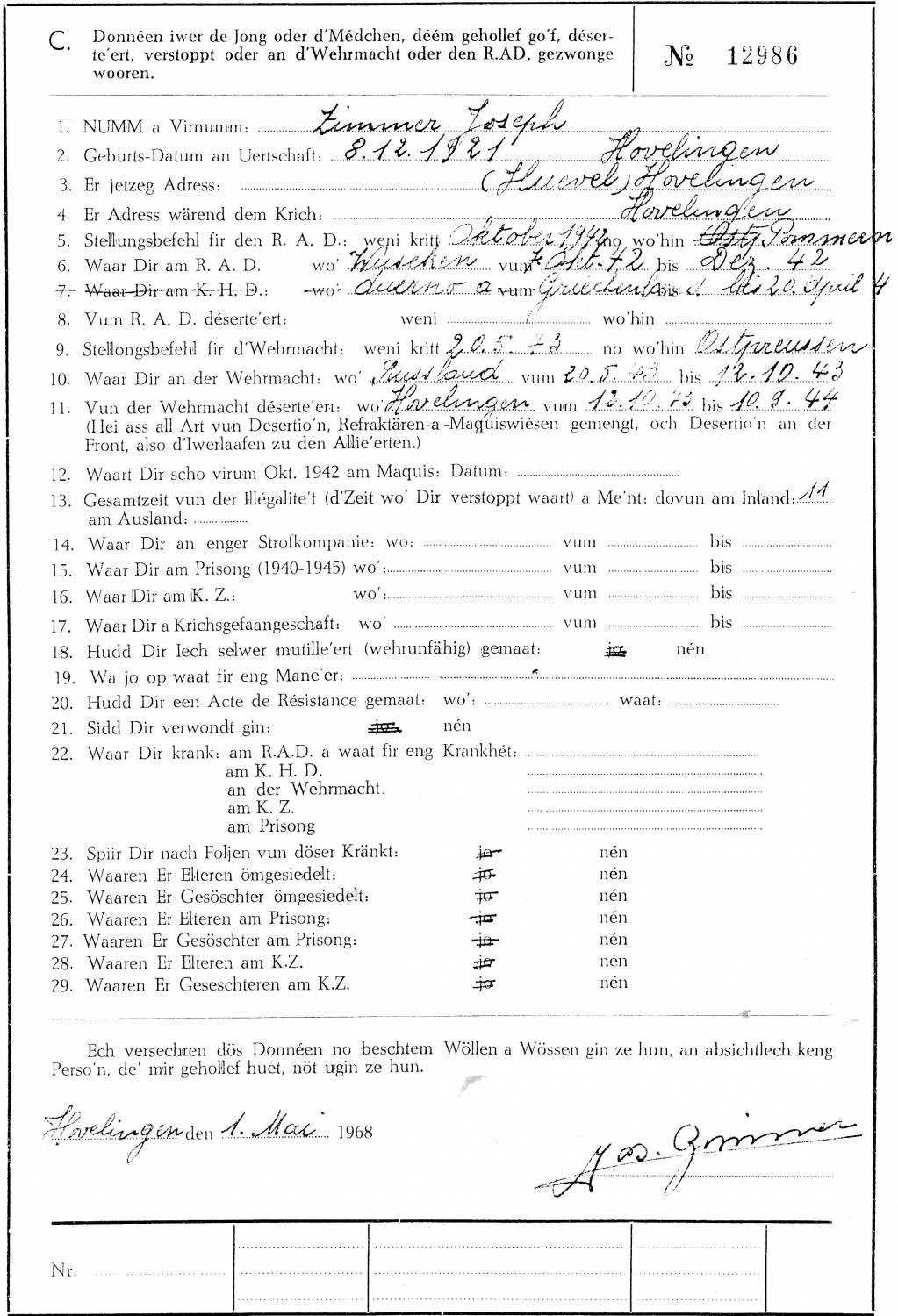 Divers_Zimmer_Josy_Hovelange img506.jpg Télécharger le document Krichjoeren 1940-1945 zu Letzebuerg.jpg Télécharger le document Zimmer_Josy_08121921_28042015_LW.jpg Télécharger le document Zimmer_Josy_08121921_SCHUH_Joffi_2018.jpg Télécharger le document MRN 1.jpg Télécharger le document 2.jpg Télécharger le document 3.jpg Télécharger le document MRN1 1.jpg Télécharger le document 2.jpg Télécharger le document 3.jpg Télécharger le document