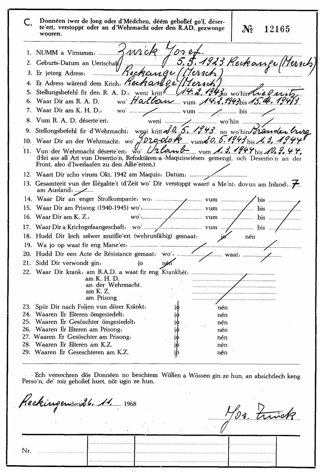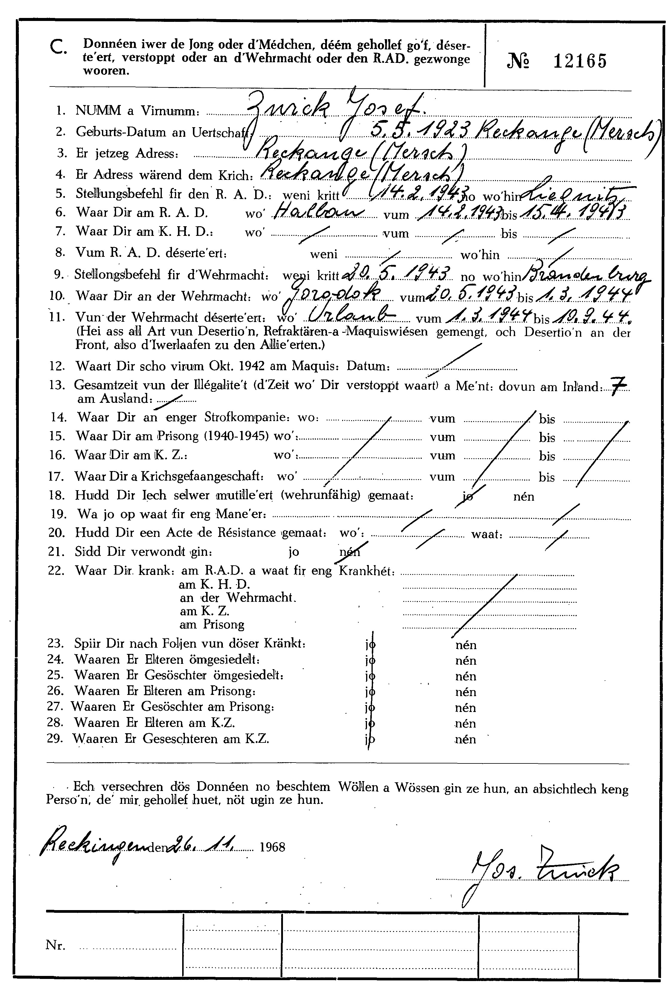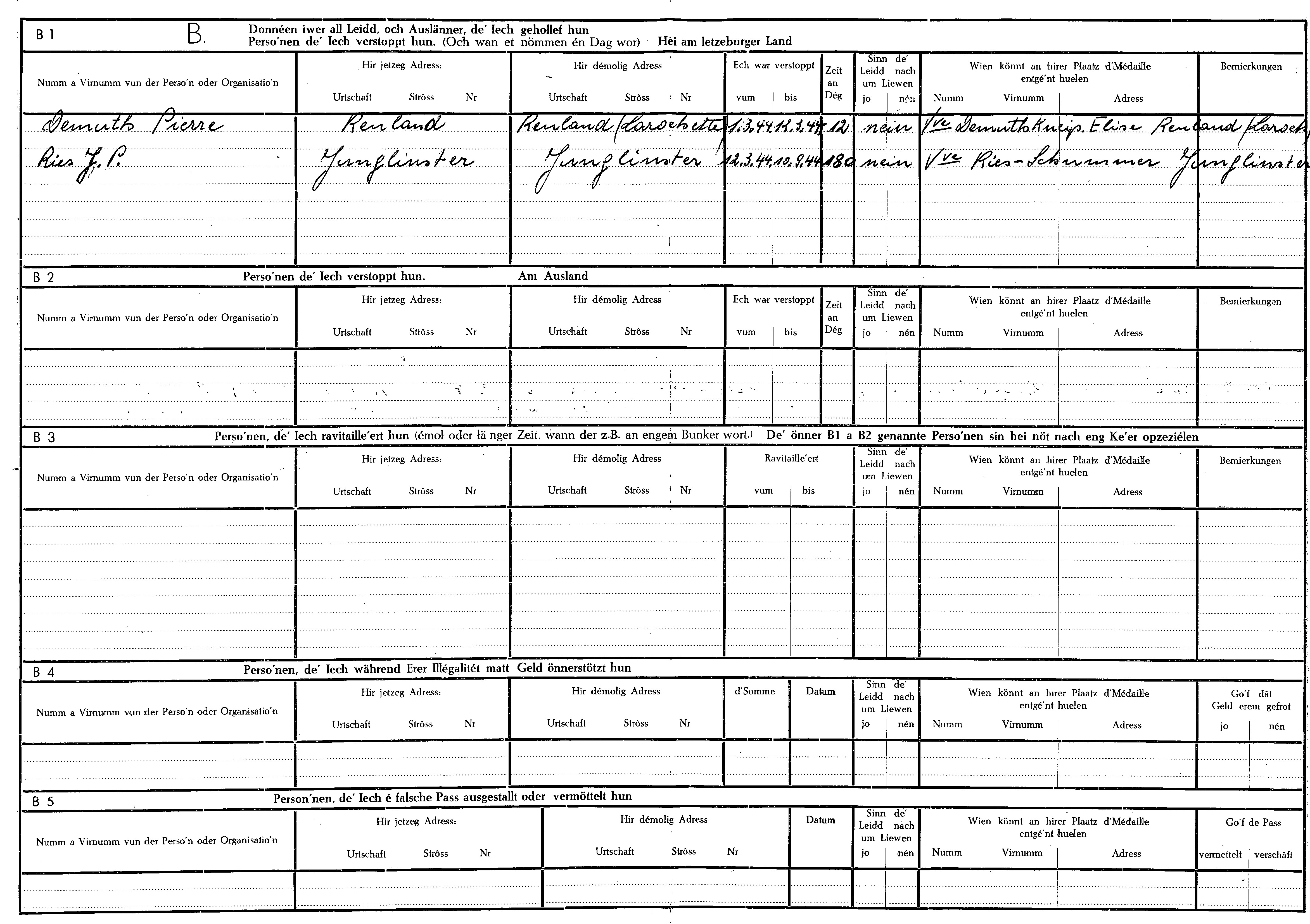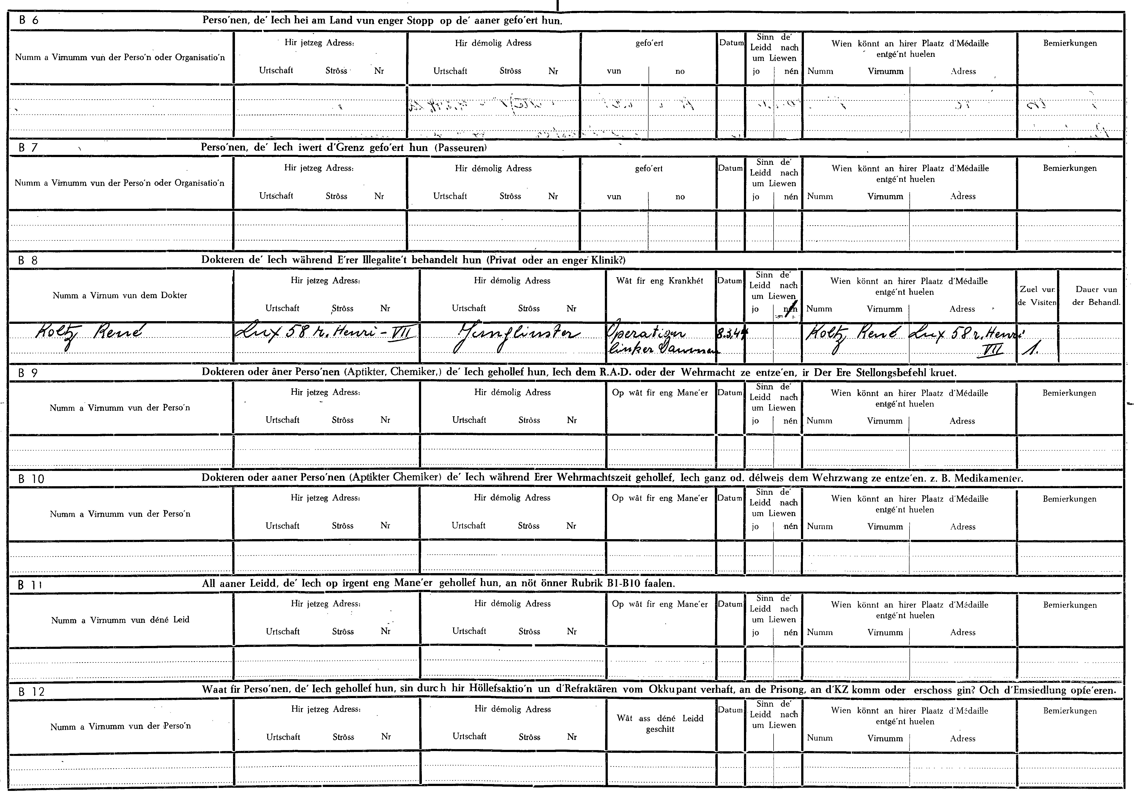 Nom, prénom, nom pendant l'occupation